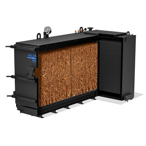Увеличенный теплообменник и особенная система подачи воздуха повышают КПД и эффективность котлов. Диапазон мощности котлов 70-350 кВт. За счет работы котла на соломе в атмосферу выбрасывается небольшое количество вредных отходов и уменьшается задымление.