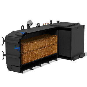 НUNTEL HOT BIO 350 - твердотопливный котел длительного горения, предназначенный для отопления коммерческих помещений, площадью от 1200 квадратных метров. Данный котел был разработан командой конструкторов для помещений сельскохозяйственного назначения. Может использовать сток сена в качестве топлива, что делает его максимально выгодным в эксплуатации. Срок амортизации данного типа котла составляет одну зиму. Гармонично сбалансирована система подачи воздуха с помощью автоматики позволяет бесперебойно работать котлу на протяжении всего срока горения. Подача соломы может осуществляться силами погрузчика.